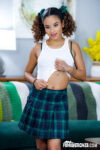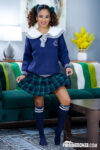 by My Baby Sitters ClubIsabella Jules starts as sexy babysitter in white shirt, blue argyle vest, black pleated skirt, and sneakers, teasing with smiles and thong …