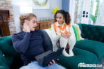Isabella Jules, tattooed petite Black beauty with curly pigtails, teases in green bra, plaid skirt, floral one-piece, and colorful swimsuit before stripping nude for hardcore action. She kneels in a box looking up hungrily, flashes her pink pussy lips spreading legs on the green couch licking fingers. Man fingers her wet slit, holds her upside down exposing ass, then she straddles his throbbing cock on the bed, holding and grinding it between thighs. Delivers sloppy blowjob gripping his shaft, rides lap reverse cowgirl nude, gets pounded doggy-style buttocks spread, all building to intense taboo sis sex with nice boobs bouncing and tats gleaming.